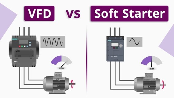 A soft starter is generally used in applications where there is a large inrush of current that could damage a motor while a VFD controls and can vary the speed of a motor.